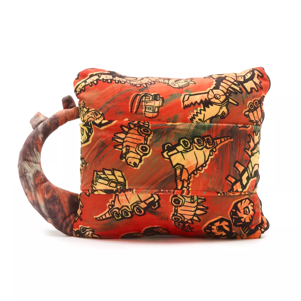- Oreiller orné d’une queue de dinosaure en 3D