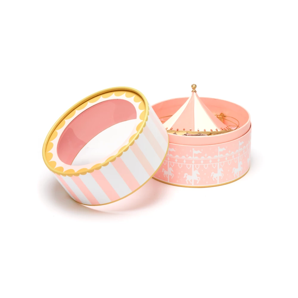 ApprĂŞtez-vous Ă vivre une chevauchĂ©e fantastique ! Ce bibi royal inspirĂ© du Carrousel de Lancelot Ă Disneyland prĂ©sente un chapiteau sculptĂ© surmontant les joyeuses montures aperçues dans l’attraction du parc. Avec son voile en tulle ornĂ© d’Ă©toiles et de coeurs, ce fabuleux accessoire saura Ă©clabousser votre style de toute la magie Disney.